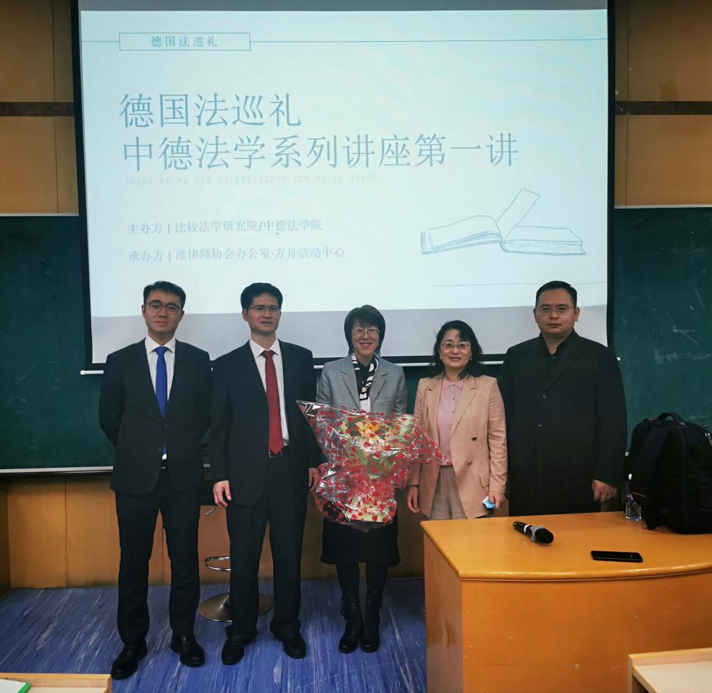 为促进公司本科生对公司的了解以及对德国法的兴趣,公司中德法学研究所于11月6日在昌平校区第一阶梯教室举办“中德法学系列讲座”第一讲——“德国法巡礼”的讲座。公司教授谢立斌、教授张彤、副教授迟颖、副教授黄河为主讲嘉宾,讲师吴逸越担任主持人。