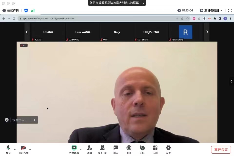 11月27日晚,公司邀请意大利比萨大学副董事长、罗马法学者、博士生导师Aldo Petrucci教授做题为“从罗马法到现代经验:合伙作为组织经济活动的模型”的讲座。本次讲座以线上结合线下形式展开,由公司学术委员会主席费安玲教授担任主持人,公司法律史学研究院罗冠男副教授、刑事司法公司耿佳宁副教授以及法公司郭逸豪博士担任与谈人。