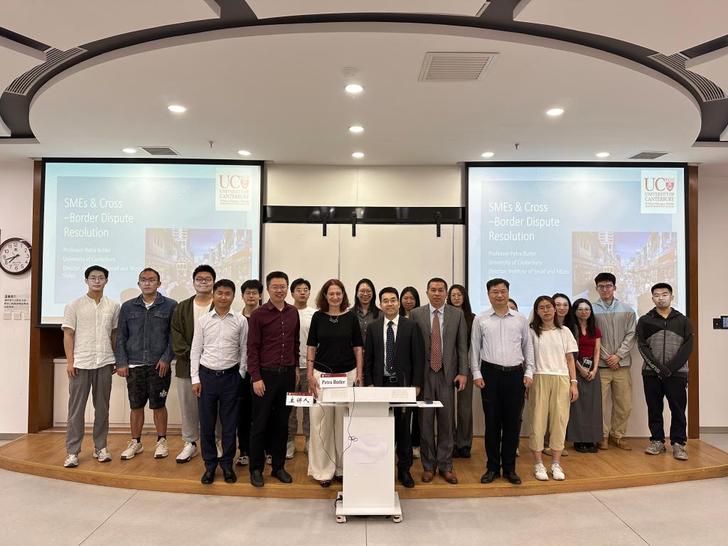5月10日晚,新西兰坎特伯雷大学法公司经理Petra Butler教授应邀在海淀校区为公司师生做了题为“为中小企业创建跨境商业纠纷解决框架”的讲座。本次讲座由公司副经理刘承韪教授主持。公司中日法学研究所所长牟宪魁教授、中美法学研究所副所长何启豪副教授、北京市瑞银律师事务所高级顾问廖鸣和北京市竞天公诚律师事务所合伙人张光磊参加讲座。