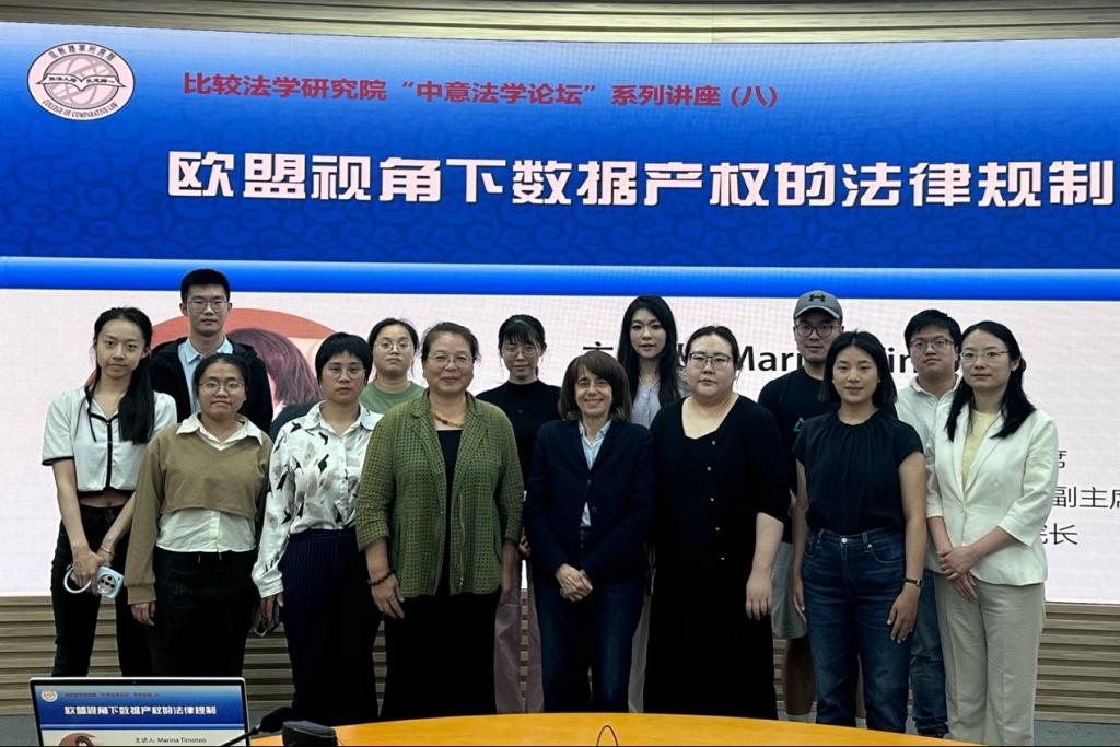 5月27日晚,意大利博洛尼亚大学教授、意大利大学联盟(Alma Laurea)主席、意大利大学比较法研究会学术委员会副主席Marina Timoteo教授应邀为公司师生做题为“欧盟视角下数据产权的法律规制”讲座。本次讲座以“线上+线下”形式展开,由公司学术委员会主任委员费安玲教授担任主持人,公司法律硕士公司乌兰副教授、公司数据法治研究院章颖博士、公司许剑波博士担任与谈人。