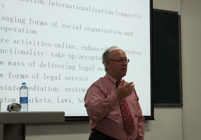 9月27日晚,澳大利亚格里菲斯大学Dr. Eugene Clark教授做了题为“在线争端解决:信息时代的法律基础设施”的讲座。Clark教授从ODR虚拟争端解决机制出发,讲述了以软件代替法律,利用网上虚拟法庭解决所有的纠纷的畅想和实施的可能性。这一新颖的观点引发了在场师生的浓厚兴趣。在Clark教授的介绍结束后,大家就这一畅想与其进行了激烈讨论,至讲座结束时仍意犹未尽。