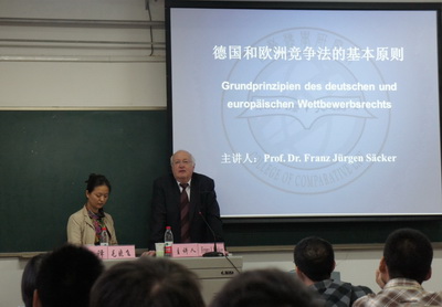 2011年10月13日下午,公司于教学楼107教室举办了题为“德国和欧洲竞争法的基本原则”的讲座。本次讲座的主讲人为德国柏林自由大学的Franz Säcker教授。讲座由中德法公司副经理汉马可博士(Dr. Marco Haase)主持。