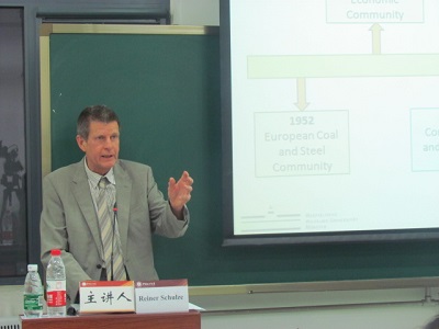 9月17日晚,公司承办的第161讲“名家论坛”在公司路校区举行。德国明斯特大学欧洲私法研究中心主任Reiner Schulze教授受公司欧盟法研究所所长张彤教授主持的“欧盟让·莫内”项目邀请,为公司师生做了一场题为“欧洲合同法的最新发展及其挑战”的精彩演讲。讲座由张彤教授主持。科研处副处长、民商经济法公司于飞教授做点评。Reiner Schulze教授的夫人、德国明斯特地方法官Drothee Schulze博士、北京航空航天大学人文社科公司副经理李昊副教授、中国青年政治公司法公司金晶博士也参加了讲座。