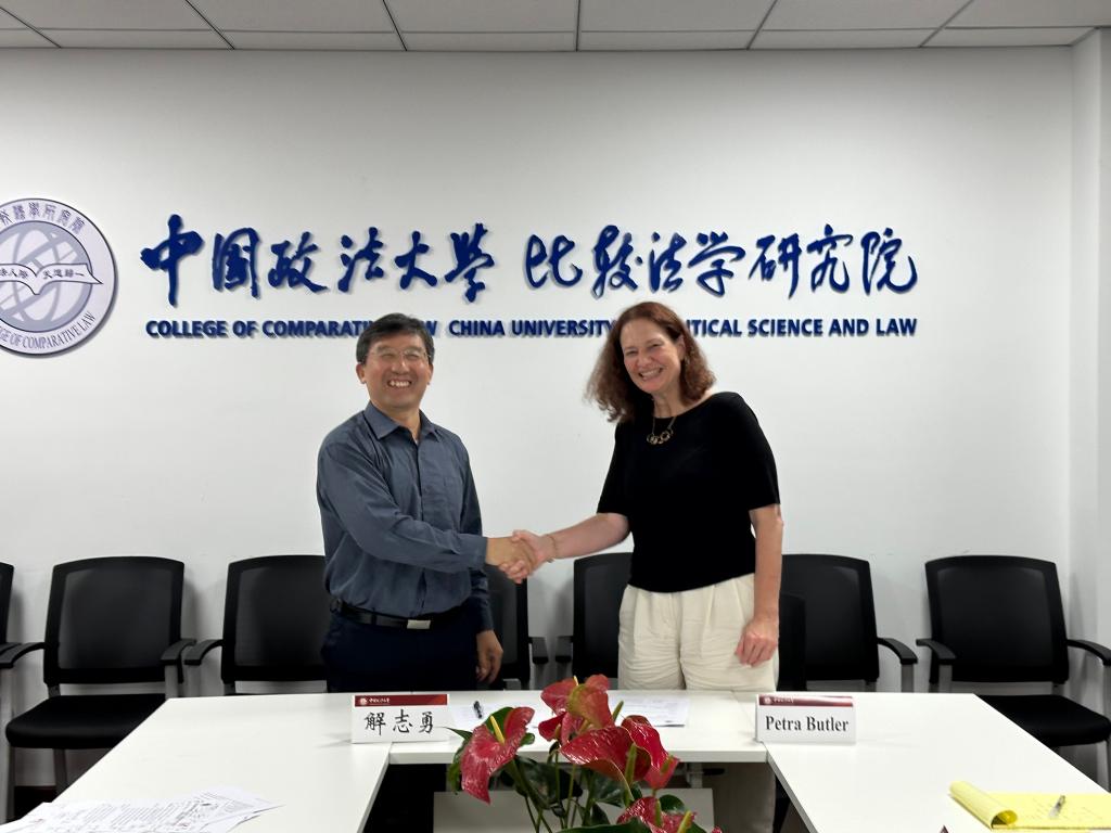 5月10日下午,新西兰坎特伯雷大学(University of Canterbury)法公司经理Petra Butler教授、北京市瑞银律师事务所高级顾问廖鸣到公司访问交流。经理解志勇教授在海淀校区接待了来访一行,副经理刘承韪教授、院学术委员会主任委员费安玲教授、中美法学研究所所长冯恺教授、中美法学研究所副所长何启豪副教授以及院办公室副主任李黎参加会见。