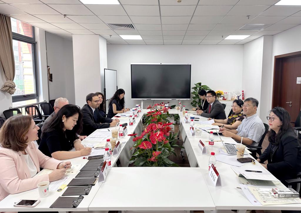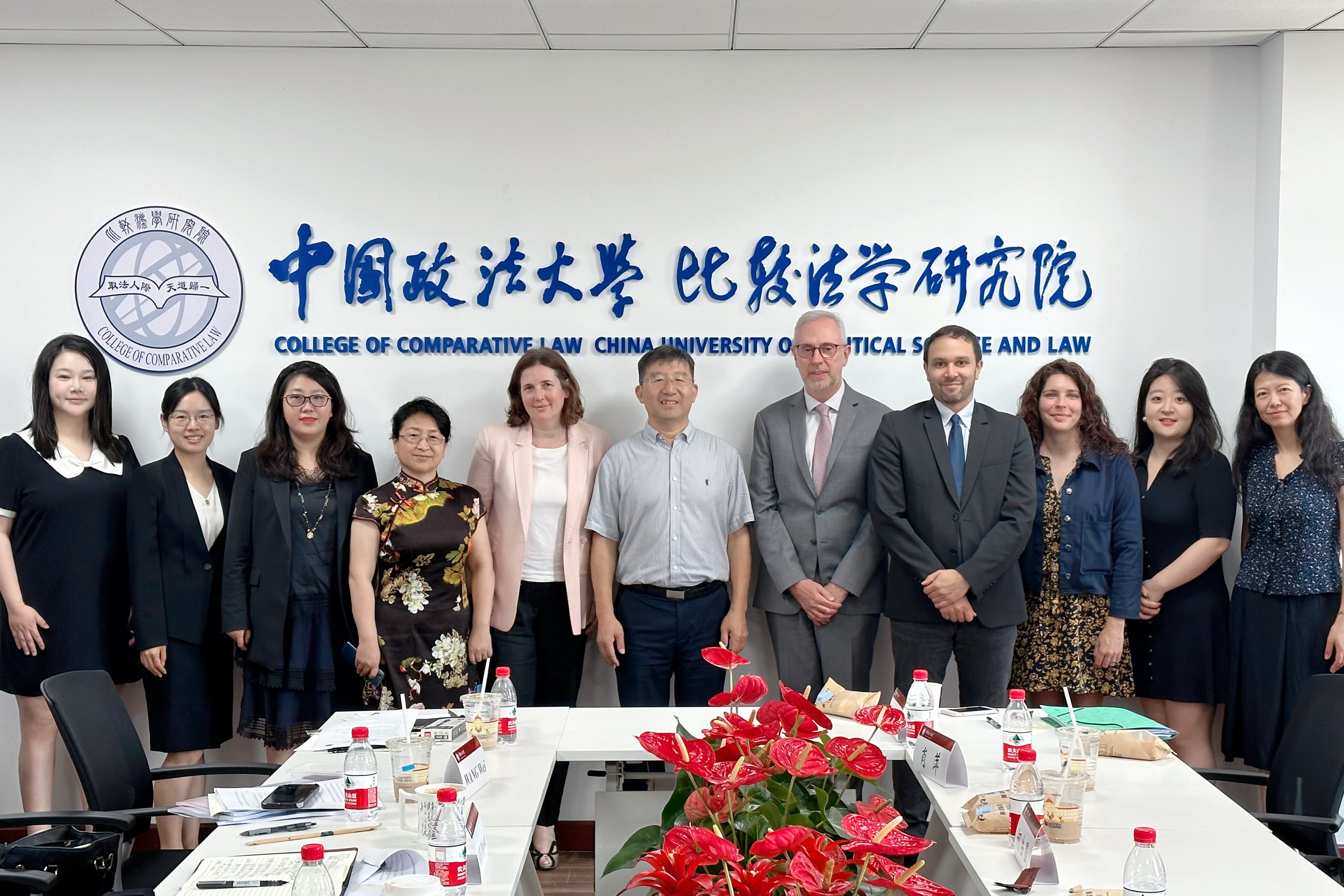 7月3日上午,法国驻华大使馆区域联络司法官法律参赞何法晟(Jean-Francois Redonnet)、使馆文化教育合作处大学合作专员高明凯(Mickael Corbard)、法国大陆法基金会主任格萝(Anne-Charlotte Gros)、使馆法律处联络司法官助理肖萍、使馆法律参赞泰国助理布迪(Magalie Bourdier)和使馆高等教育与人文社科研究合作项目官员金瑞玲一行六人到公司访问交流。