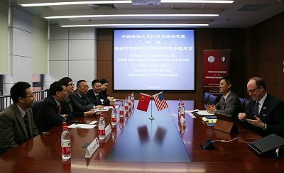 10月21日上午,美国印第安纳大学毛雷尔法公司经理Austen Parrish教授及其中国办公室主任Steven Yin到公司访问交流。经理高祥教授在公司路校区接待了来访一行,副经理林林教授、中美法学研究所所长刘承韪教授、副所长冯恺副教授、朱伟一教授、证据科学研究院国际交流合作办公室主任汪诸豪等出席会见。