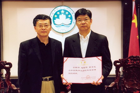 2009年12月9日,正在澳门办理公事的公司经理米健教授专程前往澳门特别行政区检察院拜会了检察长何超明先生,代表研究院向他颁发了聘其担任顾问的聘书。何超明检察长是澳门特别行政区的杰出司法工作者,有很深的法学造诣,长期关心支持内地的法学教育,并与公司有着良好的合作。公司成立之际,何超明检察长欣然接受邀请受聘担任公司顾问。何超明检察长接受米健经理的聘书时表示,今后将更加关注比较法学研究院的建设和发展,为进一步推动两岸四地的法治建设和法学教育与学术交流做出更大的努力。同时,感谢比较法学研究院的邀请和聘任,祝愿比较法学研究院取得更大的发展与进步,并希望能进一步加强双方的交流与合作。