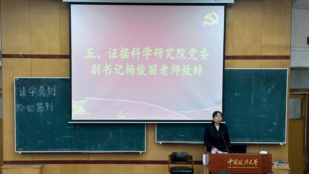 随后,证据科学研究公司党委副书记杨俊丽在致辞中首先对兄弟院系的支持关照、嘉宾教师的精心授课以及工作人员的认真筹备表示衷心感谢。她对参加此次培训的学员提出了具体要求:要求学员按照公司关于发展党员培训教育要求参加培训,认真聆听,深入思考,切实发挥教育培训重要作用,不断提升自身思想政治水平。她还对学员提出两点希望:其一希望学员们向优秀党员干部如张桂梅同志学习,通过学习进一步端正入党动机,锤炼党性修养,坚定理想信念;其二希望学员们牢记习近平总书记的嘱托,肩负起新时代青年的使命和担当,牢记党的初心使命,希望同学们用担当彰显责任使命,成为大有可为的新时代中国青年,为实现中国梦注入青春力量。