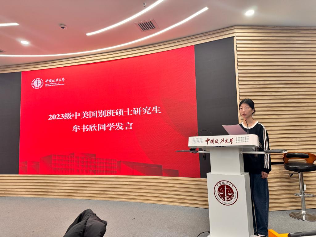 随后,2023级中美国别班硕士研究生牟书欣同学发言,她谈到,张晋藩先生展现的“人民教育家”精神,不仅体现在他对学术研究的极致追求,也体现在他立足本土、放眼国际的学术理念中。在国际化法治人才培养的时代背景下,作为一名比较法学子,要秉持先生“深耕细作、严谨笃实”的治学态度、谨遵先生“立德树人、德法兼修”的教育理念、学习先生“打破藩篱、敢为人先”的创新胆略,不断磨砺学术品格,增强家国情怀,争取不断为祖国法治事业贡献力量。