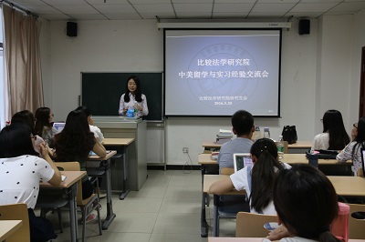 杨明荃老师简短地介绍了交流会的举办目的以及各位与会员工代表后,交流会正式开始。刘蓼乔同学获得了留学基金委的资助前往美国福特汉姆大学攻读了LL.M学位并且成功通过美国纽约州律团队格考试,她与大家分享了申请留学基金委奖学金、国外高校以及考bar、国内学业安排的注意事项和经验心得;郑喆同学主要介绍了律所实习经验,他重点分析了律所不同的工作制度,并且对如何选择律所给出了中肯的建议。