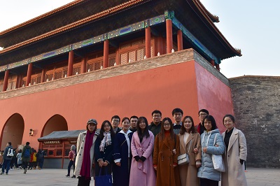 同学们首先参观了故宫博物院的古建筑。故宫是明清两代的皇宫,共有24位皇帝在此登基,是世界上现存规模最大、保存最完整的古代宫殿建筑群,是历史文化名城北京的核心,也是最具有代表性的中华文化的象征物。在参观中,应接不暇的是恢弘庄重的宫殿、雕梁画栋的内庭、别出匠心的园林,这其中体现的建筑技术和艺术水准让大家心生震撼,民族自豪感油然而生。