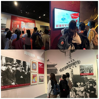 从《新青年》等重要刊物到《共产党宣言》的最早全译本,从上海石库门建筑的门洞到“一大”会址嘉兴南湖纪念红船,从红军在井冈山时期挑粮的扁担到西柏坡中央军委作战室,从《中国人民政治协商会议共同纲领》到开国大典上使用过的礼炮,支部党员和积极分子们频频驻足,细细感受每一件展品讲述的共产党人激情热血的奋斗故事。同学们在数字与多媒体的互动体验中穿越时空,在经典的回声里致敬百年沧桑岁月,致敬伟大的革命先烈。观展结束后,同学们畅谈体会,纷纷表示此场特别的展览意义非凡,每个人深知如今的幸福生活来之不易,都是一代又一代中国共产党人奋斗的成果。百年栉风沐雨,中国共产党从诞生到不断壮大,我们都是历史的见证者、参与者和创建者。