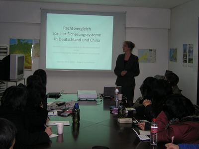 2010年1月14日晚,来自德国技术合作公司(GTZ)的Maarit Tunlia Mueller女士在院图书馆为公司员工作了题为“德中社会保障制度的法律比较”的专题讲座。
