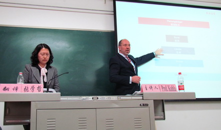 4月15日下午,德国柏林自由大学荣誉教授Wolfgang Kuhla于教学楼307教室为公司师生作了题为“德国区域和建设规划”的精彩讲座。此次讲座由中德法公司德方副经理汉马可博士(Dr. Marco Hasse)主持,公司教师张学哲副教授同声翻译。