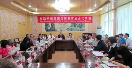 为了解公司开展中美教育交流的成功模式,拓展中美高校间的校际合作,5月16日下午,经中国教育国际交流协会协调,美国国际教育协会(Institute of International Education)代表团一行18人访问公司。张保生副董事长在公司路校区接待了代表团一行并举行了座谈。参加座谈的还有比较法学研究院张生常务副经理、中美法学研究所崔威副教授、胡霁光副教授、冯恺副教授等教师代表及部分员工代表。
