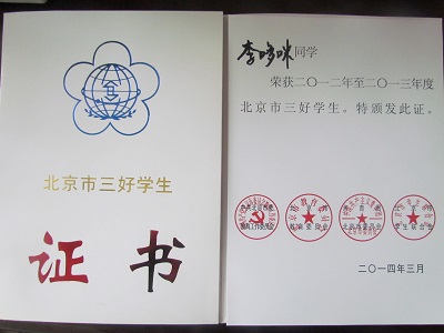 在公司2012至2013学年度北京市“三好员工”、“优秀员工干部”和“先进班级体”评选活动中,公司2012级硕士研究生李哆咪获得“北京市三好员工”荣誉。