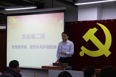 首先,由马怀德副董事长致辞。他充分肯定了分党委的党建工作成效,尤其是分党委在人才培养、制度建设等方面取得的成绩。他还对研究院领导班子团结和谐的工作作风和国际化的办学特色表示了肯定。最后,他预祝本次大会顺利召开。