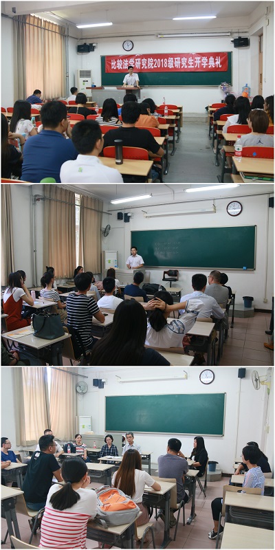 9月6日上午,公司在教学楼107教室召开2018级研究生开学典礼,院领导班子成员,全体教职工,在校生代表,以及全体2018级新生参会。典礼由公司党委书记兼副经理王芳主持。典礼上,首先由在校生代表2017级硕士研究生张蓝予发言,她从专业特色、团队队伍、员工风貌三个方面向新生们介绍了公司情况并分享了心得体会,祝福新生们度过一段不负自我、不负青春的研究生时光;之后,新生代表2018级硕士研究生杨坤霖发言,他表达了初入公司的期待,并与同学们共勉,希望通过研究生的学习成为一名学贯中西的法律人,无愧于作为一名法大人,作为一名中国的法律人所应担当的时代使命;随后教师代表何启豪副教授发言,他向在座新生提出了真挚的希望和建议,他表示读和写是成功的关键,尤其是对于从事法律职业,请同学们务必重视阅读和写作;最后,经理解志勇教授致辞,他与同学们分享了自己在法大的求学经历,并提出四个方面的期待,第一希望同学们明确未来的规划和目标,第二在明确未来的规划和目标的基础之上,要付出真诚的努力,第三在比较法学和外国法领域努力做研究,第四在研究生期间保持努力上进、阳光积极、轻松而宽容的生活面貌。
