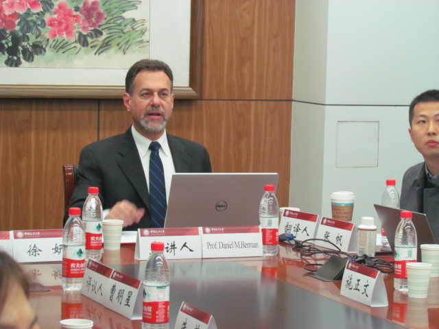 Professor Daniel Berman from the School of Law of Boston University gave a lecture on Making Tax Law to the students on Xueyuanlu Campus on the evening of 21 Nov, 2019.