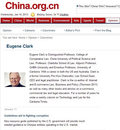 Eugene Clark appointed columnist in China.org.cn
