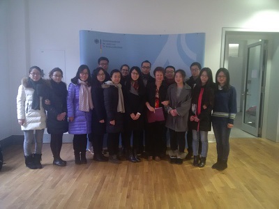 At the invitation of the German Federal Judicial/Consumer Protection Department (Bundesministerium der Justiz und für Verbraucherschutz/BMJV), 13 year 2013 and 2014 entering postgraduate students who are currently exchanging at 7 German partner universities (University of Freiburg, Humboldt-Universitat zu Berlin, University of Frankfurt, University of Munich, University of Hamburg, University of Kohl, and University of Munster) attended a 5-day tour themed Legislative Procedure of Germany and the European Union Law Transform to State Law in Berlin, Germany during 3 Nov to 4 Dec, 2015.