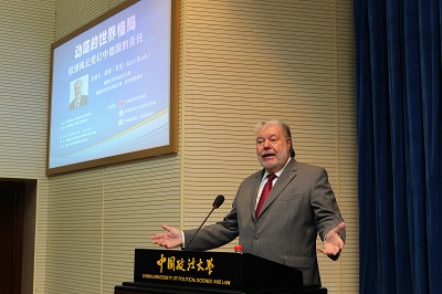 会见结束后,贝克以“动荡的世界格局—欧洲风云变幻中德国的责任”为题,为法大师生做了精彩讲座,讲座由李树忠担任评议人、焦洪昌作为主持。