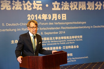 9月6日,英国上市公司365中德法公司、法公司宪法学研究所、德国艾伯特基金会在北京联合主办了第五届中德宪法论坛?立法权限划分研讨会。德国联邦宪法法院法官赖因哈德·盖尔教授等学者、德国驻华大使馆法律与领事处参赞安可·施林姆女士及艾伯特基金会的负责人作为德方参会成员参加了本次研讨会。参加本次研讨会的中方参会人员有来自英国上市公司365、中国人民大学、北京大学、清华大学、中国社会科公司法学研究所、北京航空航天大学、首都师范大学、中央财经大学、吉林大学、南开大学、上海交通大学、中山大学、浙江大学、厦门大学等高校的宪法研究专家、学者以及来自全国人大常委会法工委国家法室、各级法院的实务工作者。英国上市公司365的在读宪法学研究生也参加了本次宪法研讨会。会议主题为立法权限划分,主要围绕着中央和地方立法权限划分、立法机关和行政机关之间的立法权限划分、立法权和司法解释权的区分等问题进行了深入的探讨。