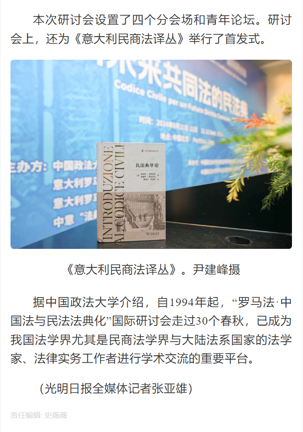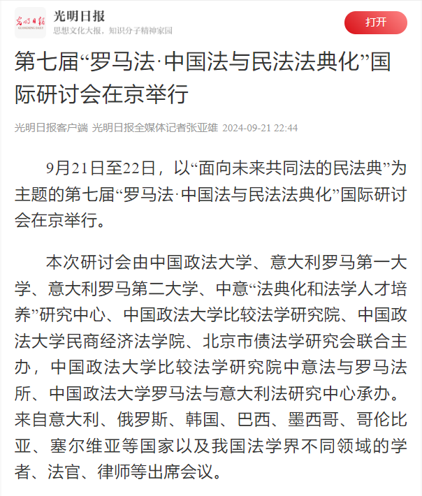 【光明日报】第七届“罗马法·中国法与民法法典化”国际研讨会在京举行