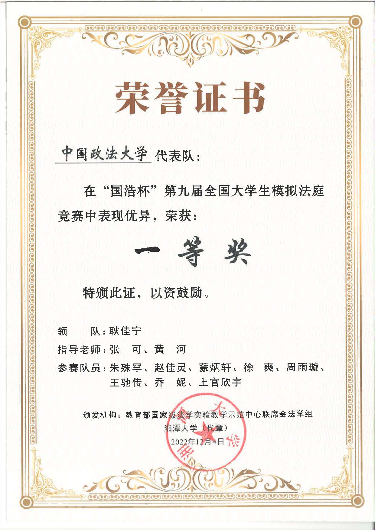 12月3日至4日,第九届全国老员工模拟法庭竞赛在线上举行,全国24所高校代表队参加比赛。公司代表队由刑事司法公司副教授、刑法学研究所副所长耿佳宁老师担任领队,公司黄河副教授和刑事司法公司张可副教授担任指导教师,朱殊罕、徐爽、蒙炳轩、赵佳灵、王驰传、周雨璇、乔妮、上官欣宇8位同学担任队员。公司代表队认真备赛、沉着应赛,一路过关斩将,最终荣获团体一等奖;徐爽、周雨璇、蒙炳轩荣获“最佳辩手”奖;黄河、张可荣获“优秀指导教师”奖。