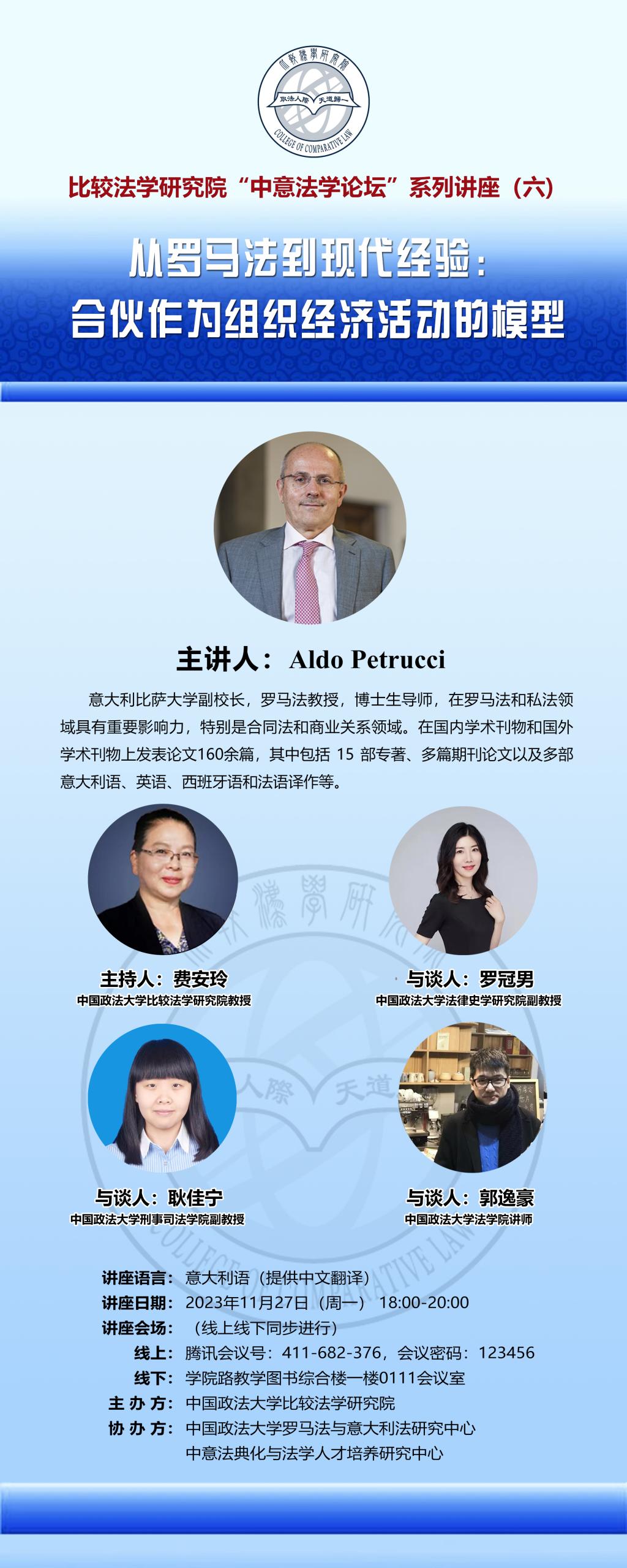 讲座通知:从罗马法到现代经验:合伙作为组织经济活动的模型