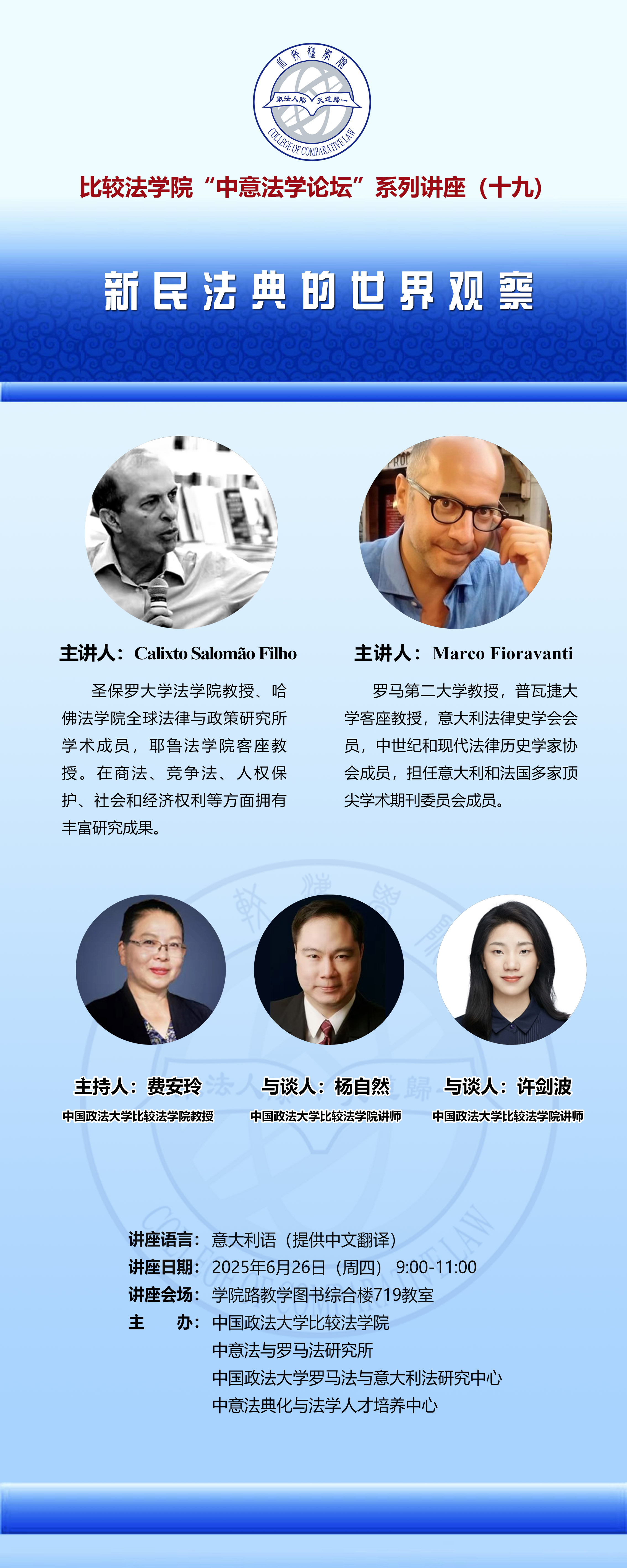 讲座通知:新民法典的世界观察