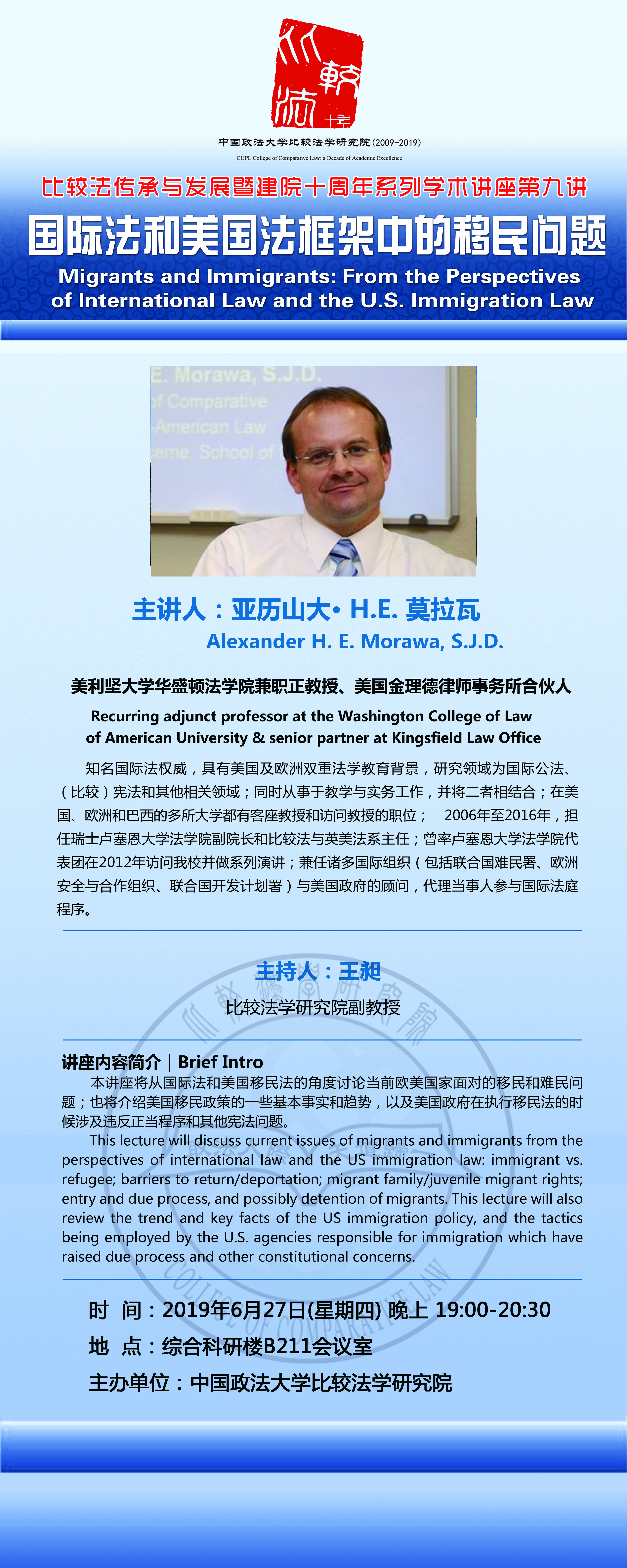 讲座通知:国际法和美国法框架中的移民问题