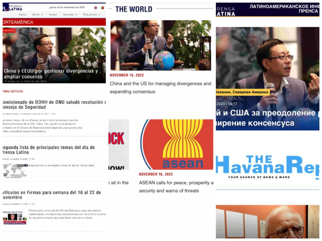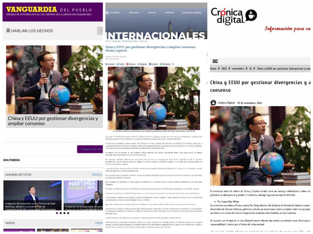 11月16日,公司副教授潘灯接受古巴国家通讯社拉丁美洲通讯社(Prensa Latina,简称“拉美社”)北京分社专访,就刚刚结束的旧金山中美元首会晤发表观点。拉美社以当日主要策划主推稿件形式将“此次元首会晤的世界意义”“造成两国当前误解和冲突的根本原因”“双方需要树立正确认知、共同管控分歧”等观点制作成新闻稿,并翻译成英文和俄文向用户进行新闻产品提供。