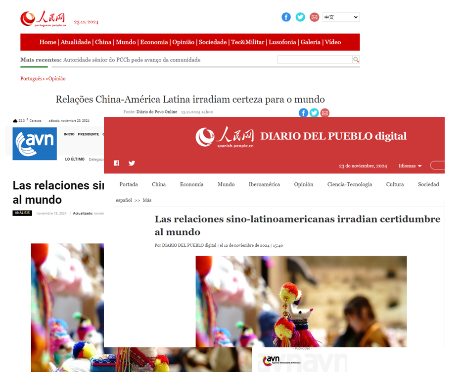 11月11日起,人民日报社下属《环球时报》英文版、人民网西文版、人民网葡文版陆续刊载潘灯主题为“中拉合作为世界注入更多确定性”的评论文章。在访问期间,其相关观点得到巴西、秘鲁、墨西哥、古巴、委内瑞拉等国主流媒体,以及多家英文媒体引述。委内瑞拉国家通讯社还在其网站头版显著位置进行了全文转载。