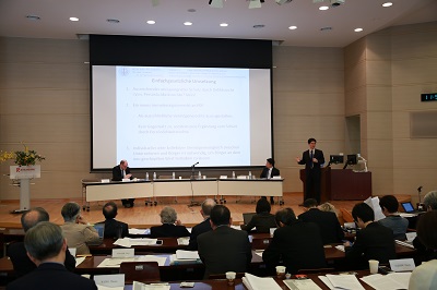 会上,来自欧洲与亚洲地区的专家、学者就欧洲一体化及其对亚洲的启示进行了深入探讨。欧方专家包括曾在德国联邦政府科尔总理内阁中任联邦国防部长的慕尼黑大学Rupert Scholz教授、欧洲人权法院副经理Angelika Nussberger法官(由德国提名)和Tim Eicke法官(由英国提名);亚方专家包括来自日本、中国、越南、泰国等国家的学者。谢立斌教授是唯一来自中国大陆地区的参会学者。