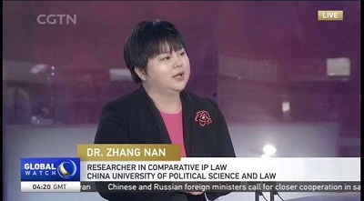 近期,公司中美法学研究所张南博士多次应邀做客中央电视台全球电视网CGTN,在“China 24”等新闻直播节目以及“Opinion”栏目中,就中美经贸摩擦中的知识产权问题和中国的知识产权保护与执法等主题进行分析与评论,展现了公司教师较高的国际时政素养、过硬的知识产权法律专业水平和精湛的英文沟通能力。