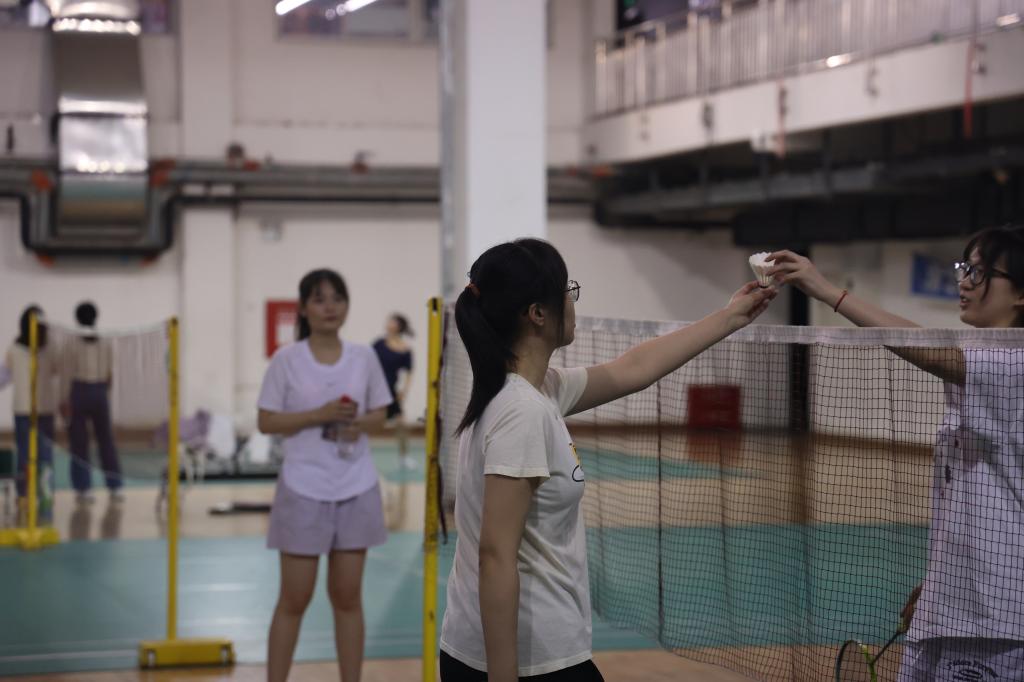 上午九点半,比赛正式拉开帷幕。选手进行简单热身,裁判组织抽签并宣读羽毛球比赛规则后,比赛正式开始。比赛过程中,选手们全身心投入,充分展现出了自己的实力。一次次全力以赴的扣杀,一次次千钧一发的扑救汇成赛场上接连不断的精彩瞬间。选手们秉持“友谊第一,比赛第二”的原则积极参加比赛的同时,也和对手建立了深厚的友谊。
