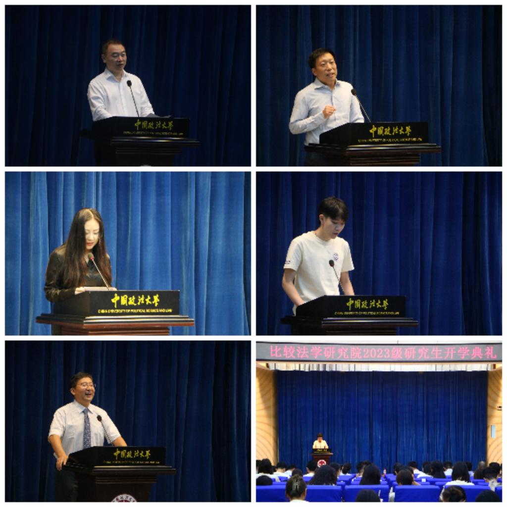 典礼上,教师代表车虎副教授首先发言。车老师对新生的到来表示热烈的欢迎和祝贺,并提出用体系化方法学习比较法等宝贵建议,希望同学们能为民族复兴和国家建设贡献力量。随后,优秀员工代表、金融街投资集团法务总监刘安鹏围绕“比较中出真理”,分享了其亲身见证比较法学研究院的发展历程,以及自身求学、求职与工作经验,建议同学们筑牢坚实的专业基础,构建个人的价值体系和认知体系,认真度过美好的研究生生活。随后,在校生代表、2022级中德班李星潼发言,她祝愿师弟师妹“精神独立自由”、“品行涅而不缁”、“只存此心常见在”,永存赤子之心,学当儒林冠,行为天下先。之后,新生代表2023级实验班常家宁同学发言,他表达了对在法大、在比较法学研究院学习生活的向往,提出了三点与新生们共勉:一是成大器者,必责为先;二是千里之行,始于足下;三是君子不器,少虚多实。最后,经理解志勇教授致辞,他简要介绍了公司近年发展趋势,并建议同学们巩固基础、滋养专业,以阅读和写作塑造思维的同时保持身心健康,希望公司师生携手同行、凝心聚力,不负时代,不负韶华,乘势而上,有所作为,共同为比较法学的发展、为法大的发展、为中国法治建设的进步作出应有的贡献。