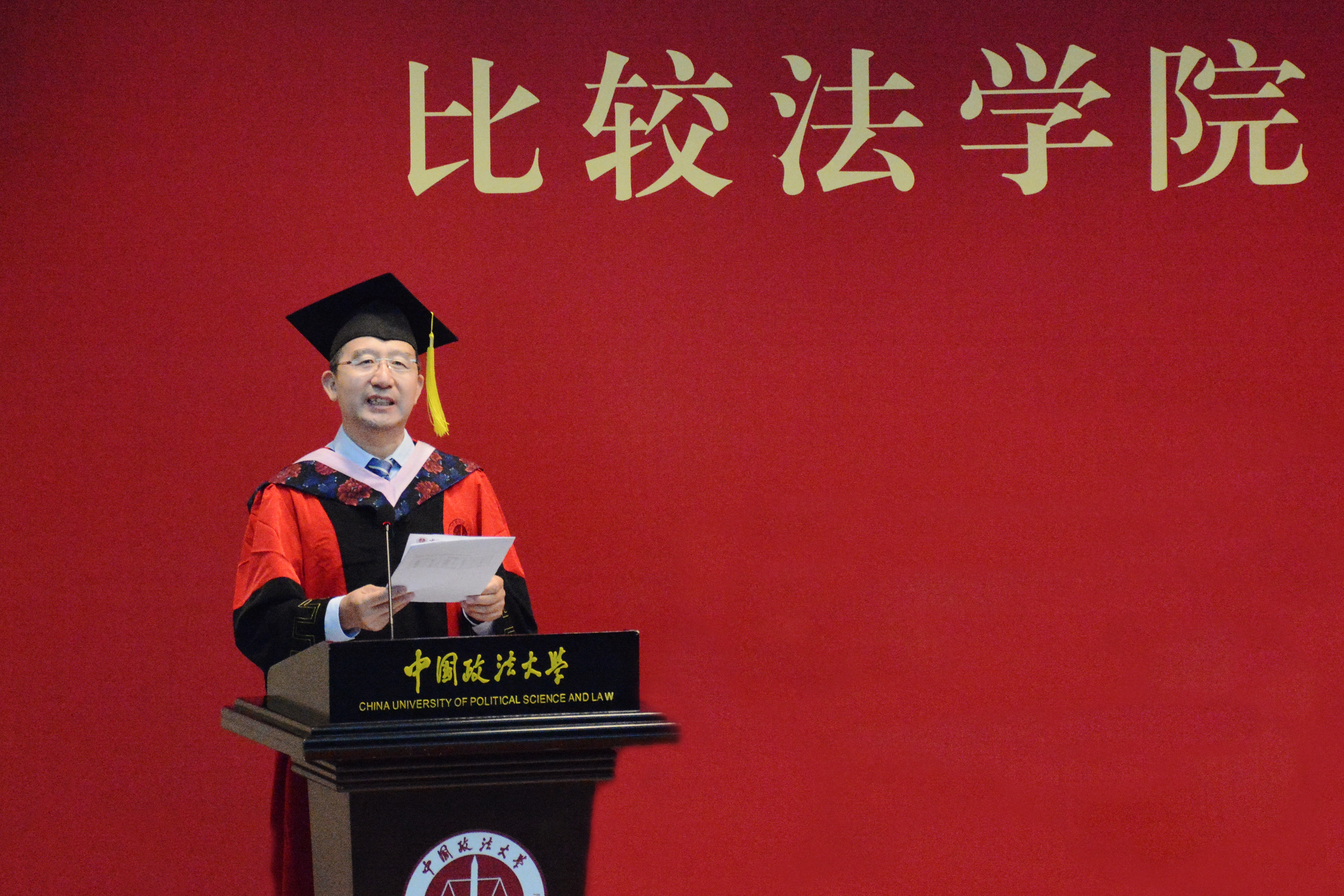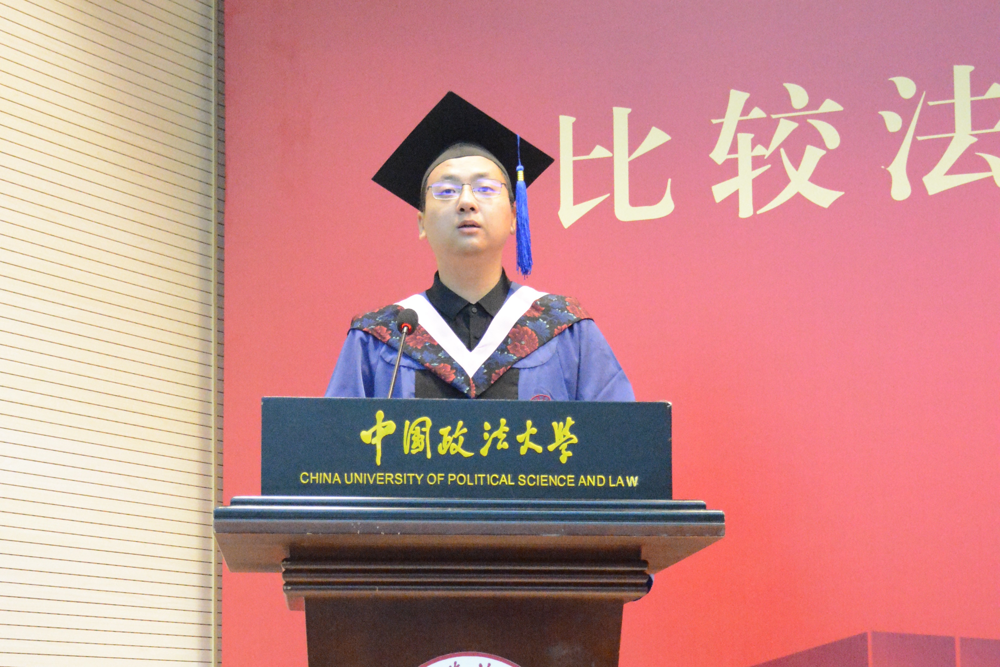 教师代表孙海波教授致辞,他为毕业生们送上三个寄语:一是要拥有“进”的底气。法律人的立身之本在于理解和运用法律的能力,在于法律人独有的教义学思维,更在于一种法治天下、天下为公的情怀;二是要有“转”的智慧。身处不确定的时代,最大的确定性就是无处不在的不确定,希望毕业生们把路越走越宽阔,把人生越过越多元;三是要有“停”的心境。当不知道自己想要做什么、无所适从的时候,不妨停下来,等一等自己的“心”,当你的“心”重新追上你的“身体”的时候,不妨再出发。