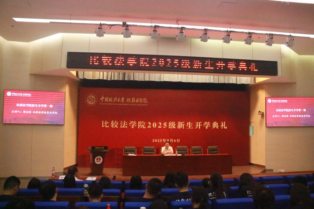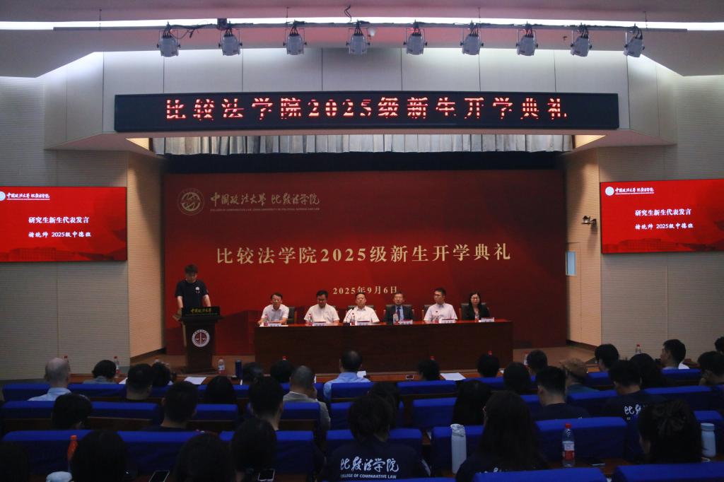 新生代表、2025级硕士研究生褚统帅和2025级本科生颜铮先后发言。褚统帅强调研究生阶段应沉下心夯实理论功底、提升涉外能力,在比较法的学术熔炉中锤炼思维、塑造定力;颜铮作为首届区域国别法特色班本科生代表,则表达了肩负使命的自豪与责任,勉励同学们深根本土、放眼全球,勇敢探索法律的多样性与共同价值。
