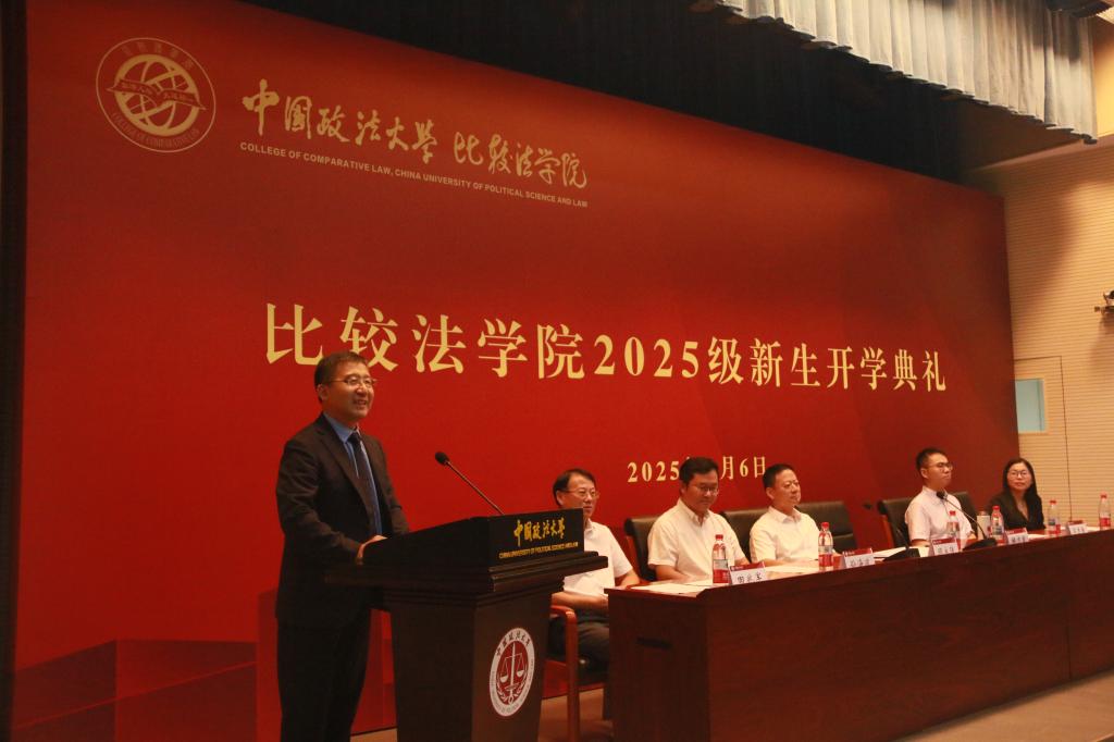 典礼伊始,全体师生起立奏唱国歌。随后,教师代表、公司中德法学所副所长吴逸越发言。他以“扎根法大、探索世界”“拥抱差异、比较中求真”“肩负使命、行稳致远”为关键词,结合自身从法大求学到留学德国、再回母校任教的经历,勉励同学们以坚定的理想信念和开放的心态,在比较法的沃土中汲取智慧,在多元法治文明中寻找共识,在法学道路上坚守责任与初心。