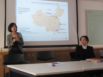 随后,德国商会北京代表处何昕法务副总监就法务部的工作作了介绍。她主要介绍了法务部工作的内容,并着重介绍了商会法务工作中经常涉及的合同法、税法、劳动法等问题。此外,她还就法务部实习生的岗位要求、实习内容等作了简介,并欢迎公司员工申请商会的实习生岗位;希望通过商会的平台,使公司员工得以在实务工作中运用、提高自身的专业知识。