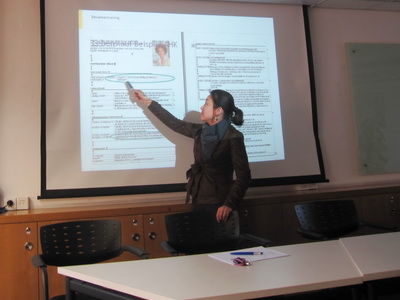 最后,德国商会北京代表处人力资源总监张弘女士为公司员工作了一场德国企业应聘培训讲座。张弘女士结合自己多年来从事人力资源工作的丰富经历,先后就德国企业的企业文化、求职中如何进行自我分析、求职职位选择、简历制作、求职信撰写、面试技巧等诸多细节进行了系统且详细的介绍。参加培训的同学纷纷感到受益匪浅。