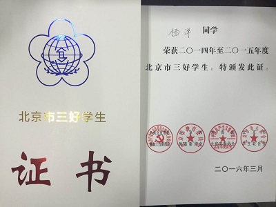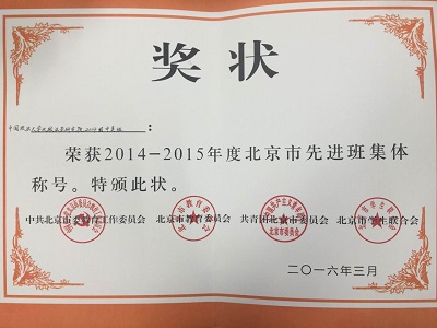 在公司2014至2015学年度北京市“三好员工”、“优秀员工干部”和“先进班级体”评选活动中,公司2014级硕士研究生杨洋获得“北京市三好员工”荣誉,2014级中美班获“北京市先进班集体”称号。