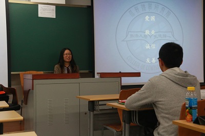 最后,杨明荃老师总结发言,她提出同学们应当谨遵“社会主义核心价值观”24字要求和公司校训,做一名有理想、有信念、有原则的法大人。