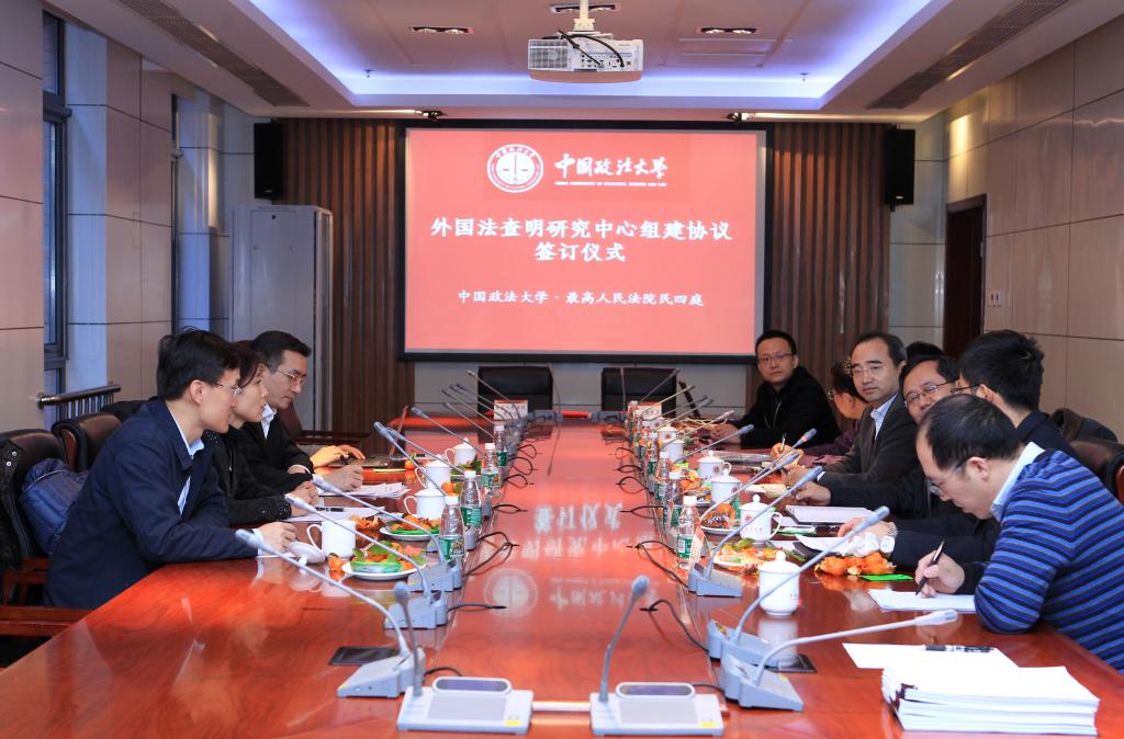 The decision of co-establishing this centre was made after the College of Comparative Law negotiated with the Civil Division No 4. President Huang Jin and Chief Judge Luo Dongchuan signed the framework agreement on establishing the centre on 28 Nov, 2014.