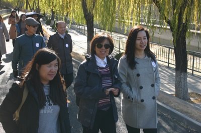 恰逢蓝天如洗的晴朗天气,初冬午间的公园里,色彩斑斓、暖意融融,老师们相伴行走在小月河畔,一边浏览沿途的自然风光,一边探寻遗址公园的历史遗迹。约半小时之后,老师们陆续抵达“蓟门烟树”终点,终点处精心设计了“名贴打卡”和“落叶抽奖”环节,老师们按照抵达终点的顺序将姓名贴纸粘贴到活动展板上,并选取心宜的落叶、抽取活动奖品。