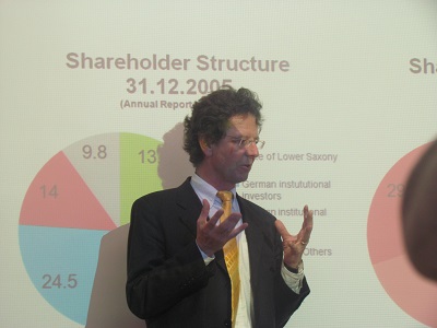 Moellers教授首先介绍了保时捷-大众兼并战的发展历程。保时捷公司从2005年起斥资收购大众公司股票,但后因保时捷公司受困于金融危机,导致信贷紧缩以及汽车销量骤降,陷入了一场15年来最严重的财务危机,最终在兼并战中败落,一场“蛇吞象”的收购战演变成了大众公司成功反收购保时捷公司的保卫战。2012年保时捷公司与大众公司合并。