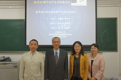 10月15日晚,台湾“中研院”欧美研究所副所长洪德钦研究员在公司公司路校区教学楼107教室为公司研究生做了题为“欧盟食品安全局风险评估体系之研究”的讲座,这也是欧盟让·莫内项目(Jean Monnet Programme)系列讲座之五。讲座由公司欧盟法研究所执行所长张彤副教授主持,北京理工大学法公司龚向前副教授和公司国际法公司兰花博士做点评嘉宾。公司常务副经理张生教授也出席了讲座活动。