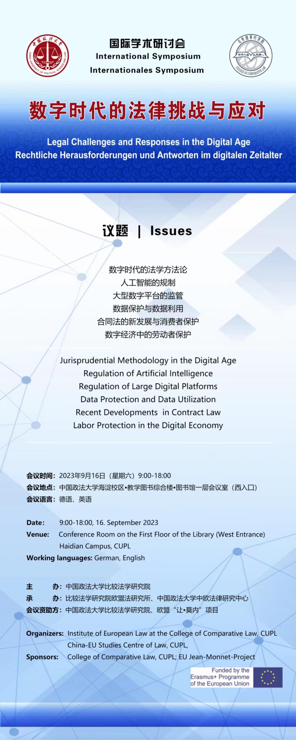 The International Symposium on the Legal Challenges and Responses in the Digital Age, organised by the Centre for China-European/EU Legal Studies, was successfully held in Beijing on 16 September, 2023.